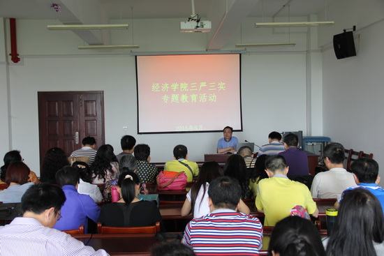 5月21日,yl23455永利熊少平书记为全体教师作“三严三实”专题党课报告。熊书记强调要把专题教育与学院的十三五规划的制定等日常工作联系起来,通报了学院2015年目标管理任务的进展情况及制约发展的瓶颈,重点分析了学院在团队建设、科研立项、人才引进、员工工作等方面存在的问题,并广泛听取了教师的意见和建议。他希望学院全体教师要以本次专题教育活动为契机,围绕工作作风建设这根主线,狠抓思想建设、组织建设和制度建设,对照自身不足,聚焦问题导向,积极整改,推动学院蓬勃发展。