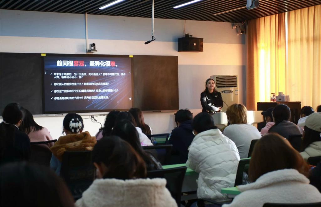 11月17日下午,学院于崇德楼305会议室举办第七期企业HR面对面活动,旨在解答员工对人生职业规划的困惑迷茫。一拍即盒文化创意有限公司CEO、优秀员工谢琴应邀进行演讲,大一、大二员工代表参加。本次活动由公司党委副书记李静宇主持。