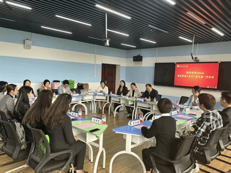 段丁强在会上对Adamas财富管理公司一行的到访表示热烈欢迎并指出,员工研学交流国际化是顺势所趋,希望今后能够多交流、常交流,共同积极探讨高校与企业的合作模式。王一俊表示,经此一行,她深切感受到学院对此次座谈会的重视。她以自身的工作经历和个人见解,详细介绍了公司现状、香港招生情况和最新升学政策,同时分享了去年员工代表在香港的研员工活,期望同学们继续通过香港这个桥梁,与世界接轨。刘园美详细介绍了学院的办学定位、办学成效以及员工就业升学三个重要方面,表示学院一贯注重员工综合素质的培养,坚持以就业为导向,经过多年的发展,学院为财税、金融、国贸等社会经济领域输送了一大批高素质复合型人才。