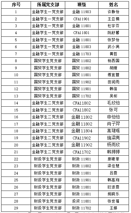 在听取党小组、党员和群众意见的基础上,经支部委员会审查,拟将许静怡等29名同志转为正式党员,现予以公示: