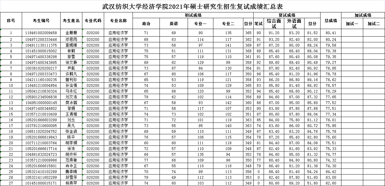根据《永利集团登录入口2021年招收攻读硕士学位研究生复试录取方案》、《yl23455永利2021年硕士研究生复试录取工作实施细则》文件精神,公司于2021年3月24-25日规范组织了2021年硕士研究生复试工作。经专业课笔试、外语能力测试、综合素质面试等环节,已完成2021年公司研究生招生复试(应用经济学学硕)工作,复试成绩已报学校审核,现公示如下: