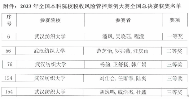 本届赛事历时半年,由全国本科院校税收风险管控案例大赛组委会主办,浙江财经大学承办,31个省份、自治区、直辖市的430多所高等院校,近3000支参赛队伍、近9000名员工经过校赛、省赛激烈角逐,104所高等院校的160支队伍晋级总决赛。在总决赛中共有24支代表队获得一等奖(湖北省仅中南财经政法大学与永利集团登录入口),40支二等奖(湖北省仅武汉大学、华中科技大学、永利集团登录入口、武汉工程大学与武汉商学院5所高校)。