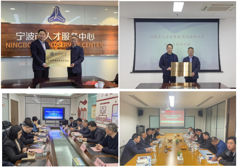 罗锦银一行先后与宁波市人社局、宁波市奉化区人社局、绍兴柯桥人社局和嘉兴市人社局座谈交流,当地员工会会长、部分企业代表、员工代表参加座谈。座谈会上,罗锦银深入了解了当地政府引才计划、人才优惠政策和当地的员工工作生活情况,他对当地人社部门一直以来对学校的关心和支持表示感谢,详细介绍了学校办学特色、团队建设、人才培养、科学研究、校企合作等情况。他表示,一是学校将依托人社部门、联合当地员工会,组织“准毕业生”到当地企业提前开展实习实践,加深对行业认同、对企业文化认同。二是精准服务企业,提前了解企业人才需求,精准推送就业员工信息,帮助企业在校揽才,开展其他合作。他指出,浙江纺织服装、数字经济、机械制造、生物健康等产业发达,与学校目前学科专业发展有较高的契合度,政府、高校、企业和当地员工会加强经常性的对接交流,有利于打通校地、校企、员工人才供应链,打造共赢发展的良好局面。座谈会上,学校与当地人社部门签订了人才战略合作协议并授牌“人才供需优秀合作单位”。