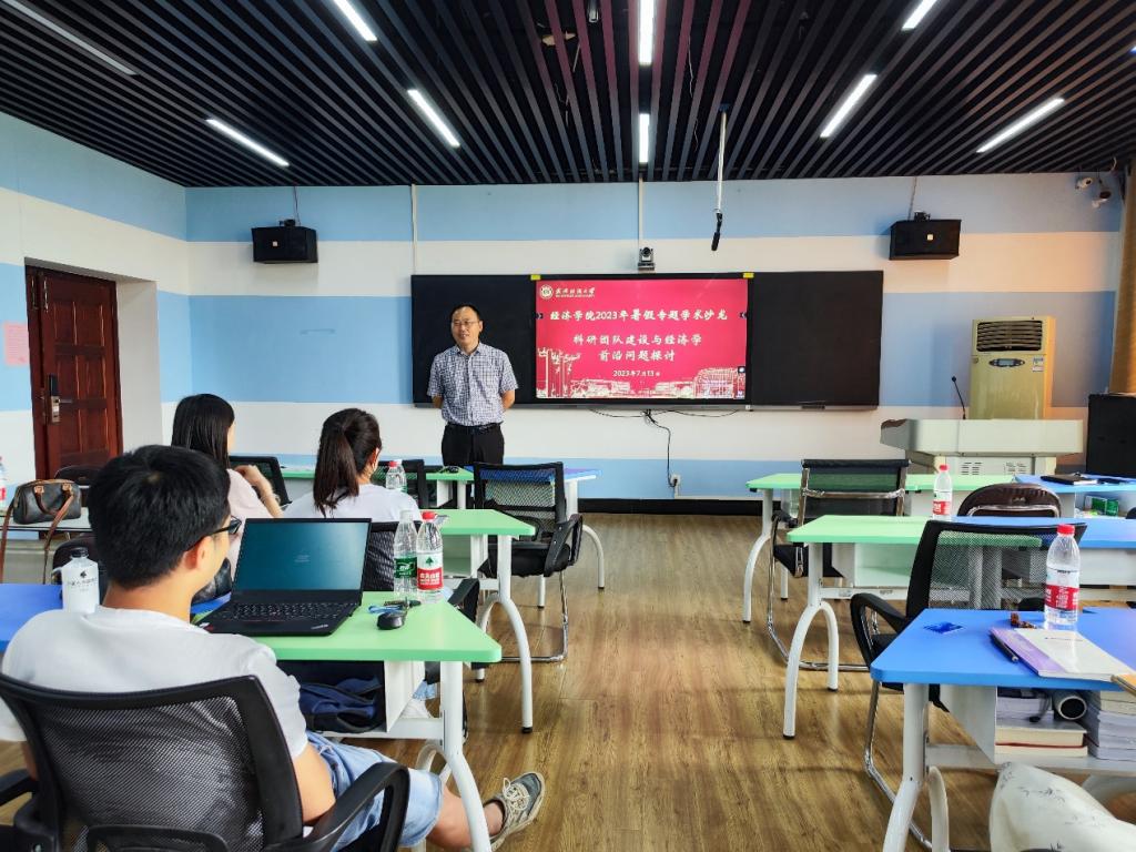 为营造浓厚的科研氛围,完善团队建设并开拓公司教师研究思路与学术视野。7月13日上午,学院在崇德楼07-305举办了第425期阳光论坛暨yl23455永利2023年暑假专题学术沙龙。本次活动主题为“科研团队建设与经济学前言问题探讨”,由王滨经理主持,学院各团队骨干老师参与了本次活动。