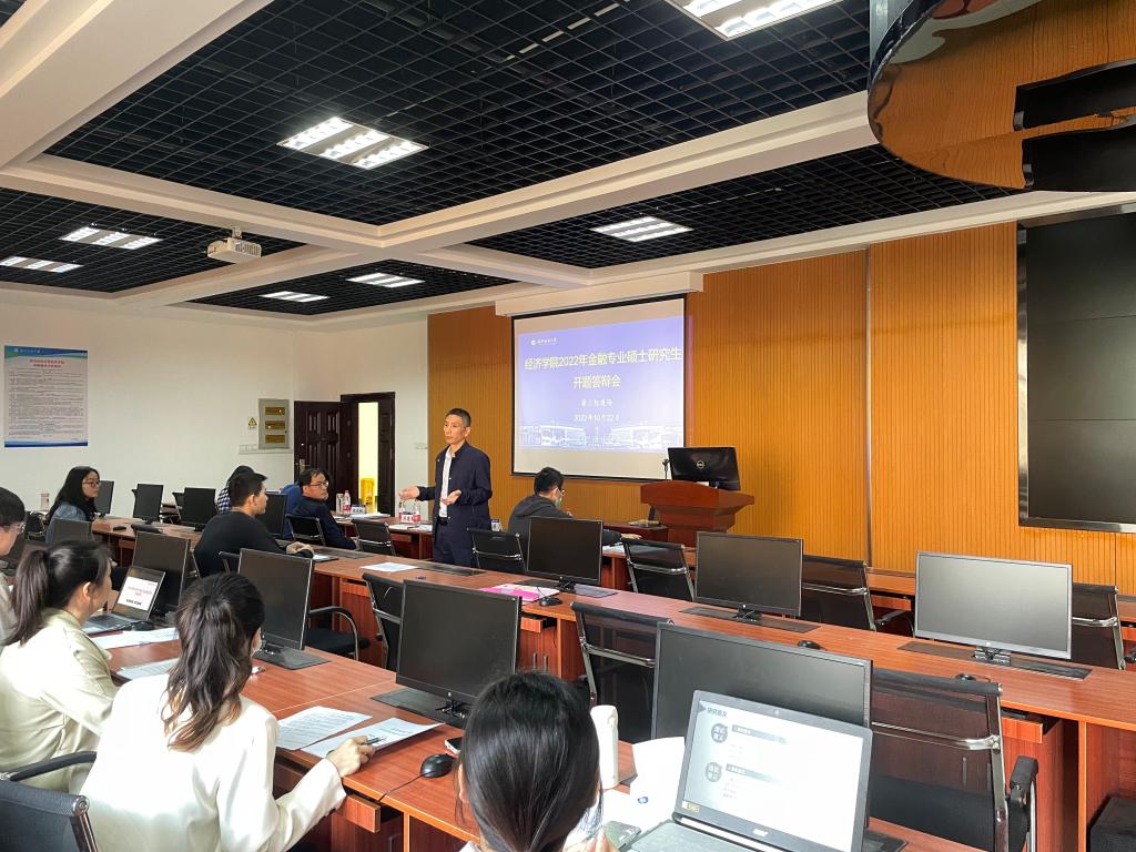 10月22日,yl23455永利于阳光校区崇德楼(7号楼)T301、305、308举行2021级金融硕士研究生学位论文开题答辩会。特邀武汉理工大学yl23455永利喻平教授、华中科技大学yl23455永利李卫兵教授、中南财经政法大学金融学院吴建军教授担任答辩委员会主席,学院组成由段丁强为组长的领导小组,研究生导师担任答辩委员进行点评,全体在校研究生参会。