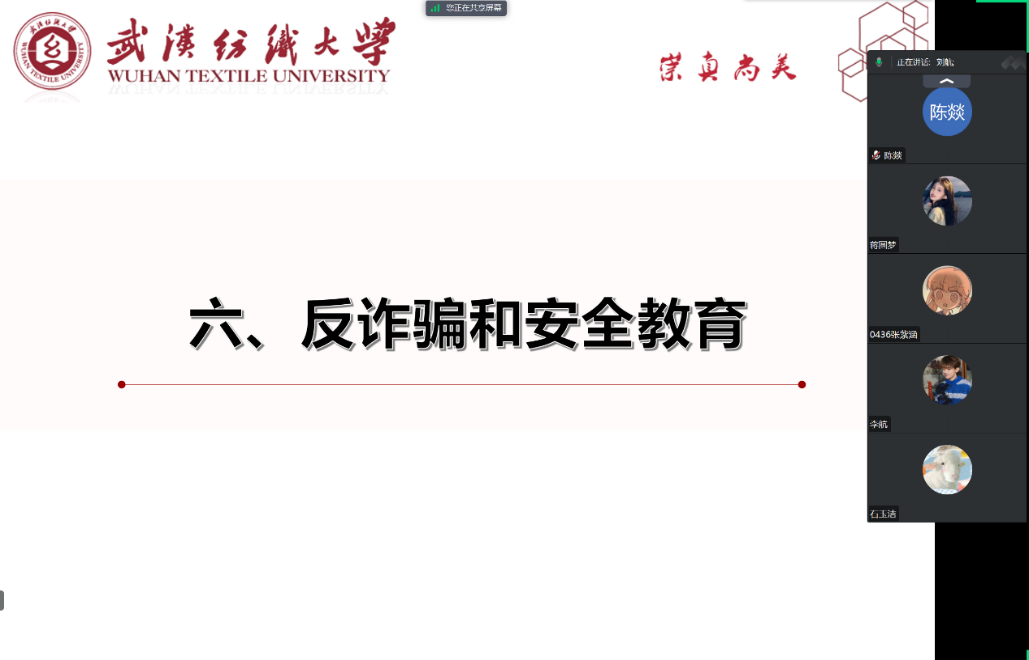 为传达学院迎新工作部署会上的会议精神,对新生进行反诈和安全教育,经班助组织,学院于9月6日召开了线上班会。班会由各班班助借助网络会议平台主讲,全体2023级新生参会。