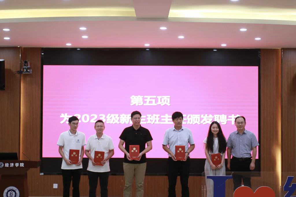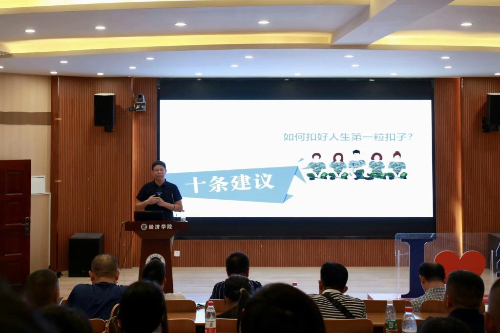 为了更好的帮助新生适应大学学习和生活,引导他们做好学业规划和职业生涯规划,帮助他们成人成才成为最好的自己,学院为23级新生聘请了年富力强的青年博士、学校心理健康中心、研究生工作部的老师以及有丰富员工工作经验的老师来担任班主任,经理段丁强为23级新生班主任颁发聘书。随后,为了增强新生及家长对老员工活适应的了解、认识老员工的心理动态,从而更好地帮助新生适应接下来的学习征途,来自学校心理健康中心的23级新生班主任代表赵宝富老师分享了“从高中到大学的‘心’起点—老员工心理适应性交流”。