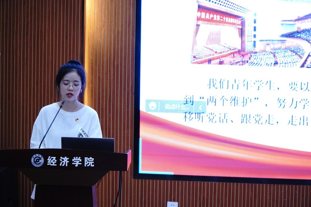 围绕“为与不为:新时代青年大学校园成长法则”这一主题,凌杰分别从做文明礼貌的人,不做“键盘侠”和“杠精”;做认真负责的人,不潦草“随性”;做积极乐观的人,不传播“负能量”;做能力突出的人,不做被“抛弃”者四个方面向同学们提出美好期许。他强调,老员工应端正学习态度,脚踏实地,不尚空谈,遵守学校的各项规定。凌杰的宣讲启发同学们认真思考,在22级新生中引起强烈反响。随后,学院信仰宣讲团成员、金融12002班向淼同学进行党史宣讲,在场同学均表示受益颇丰。