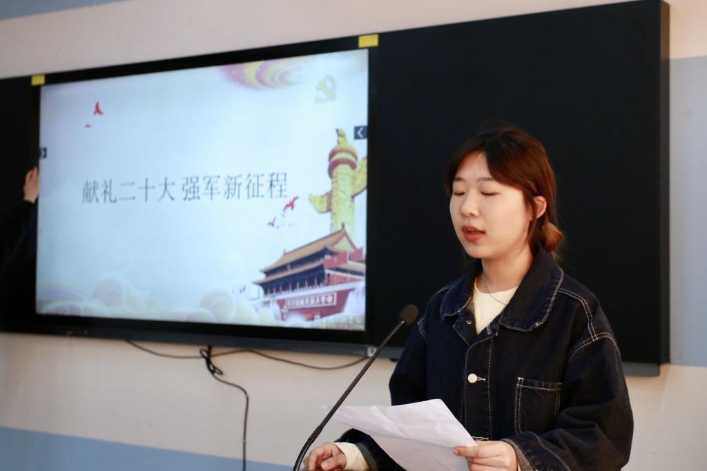 康鑫月以“青年新奋进,奏时代强音”为题,讲述了在新时代,青年人是实现中华民族伟大复兴的生力军,要甘于吃苦,乐于奉献,勇于担当。以志为先,以苦为食,以勤为径。练就过硬本领,贯彻群众路线,继往开来做家国栋梁。