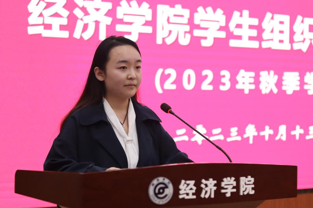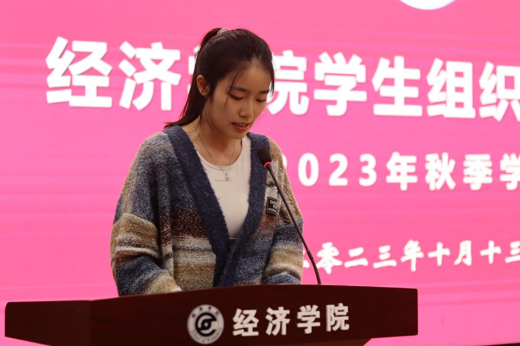 会议伊始,李一鸣向大家详细介绍了第十三届员工会主席团成员。员工会执行主席曾诗玥发表演讲。曾诗玥向员工会新成员的加入表示欢迎,对上一届分团委领导和员工的帮助与关怀表示感激,同时对未来员工会的工作提出了期望:一是加强学风建设,提升整体素质,建立高效的工作机制;二是活动多样化,满足员工需求,激发员工的热情与活力;三是加强与学院的沟通与合作,促进内外协调发展。曾诗玥向大家分享了自己在员工会工作以来的成长感悟。随后各部门上台进行工作汇报,向全体员工介绍了近期工作内容,反馈了其中存在的问题,对未来工作进行了展望。