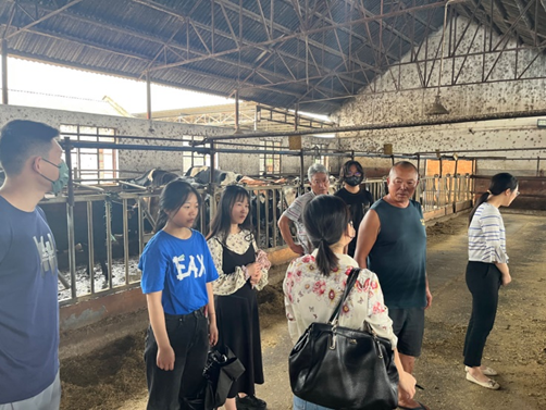 实践团队首先来到大理奶牛养殖公司、来思尔牛奶生产公司,与企业负责人进行交流。围绕保护洱海环境的绿色发展理念,深入了解当地养殖产业链的发展困境和发展优势,并对该地特色养殖行业发展状况做重点探究。玉龙县科技局局长木丽东表示,大理当地奶牛养殖历史悠久,奶业生产基础厚实,目前养殖业发展的主要困境在于当地自身饲料供给不足,大量外购输入导致饲料成本偏高。团队通过调研发现,小规模养殖场生存困难,在养殖技术、养殖成本和养殖设备等方面均有较大改进提升空间。
