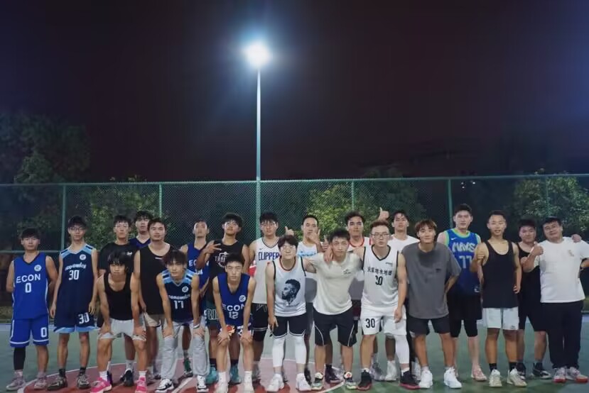 篮球健儿们在篮球场上挥汗如雨,健步如飞。他们配合默契,分工合理;他们相互扶持,紧密配合;他们互相鼓励,积极拼搏。他们时而逼抢、时而挡拆、时而防守。他们为观众们呈现了一场精彩的比赛,在一次次争球中展现昂扬斗志,在一次次进攻时展现青春力量,在一次次投篮中展现正茂风华。大家在比赛中全力以赴,无关成败输赢,但求问心无愧。研究生丁平的一次精彩进球赢得了全场的欢呼;本科生于文浩的一次精彩反攻点燃全场;喻洲林面对对方的防守,毫不退缩,顶着压力为队伍打进两分,全场为之沸腾。