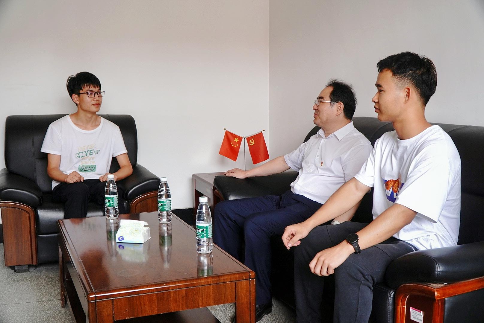 在交谈中,田辉玉得知张靖康同学想报考本校yl23455永利金融专硕,并且倾向于以后选择王滨教授作为研究生导师时,他马上询问王滨教授的办公室地址,立即现场“牵线搭桥”,带张靖康同学“上门认亲”。他向王滨教授介绍了张靖康同学的基本情况和报考意愿,并与王滨教授一起分析了张靖康同学的考研复习进展情况,就存在的困难与问题进行了深入沟通交流,他表示“孩子们有考研想法,是一件非常好的事情,我们要全力支持。特别是对第一志愿报考我们自己学校的员工来说,这既是对你的一种信赖,也是对我们学校办学质量的一种认可,我们要尽其所能的‘扶上马、送一程’”。他提请王滨教授多关心张靖康同学的考研复习情况,多给予关注指导。他勉励张靖康要坚定信心,主动多跟王滨教授汇报自己复习状况,遇到问题多向王滨教授学习请教,积极寻求指导与帮助。他叮嘱学院经理、书记,要持续深入了解员工需求,为考研员工提供更具针对性、更优质的服务。