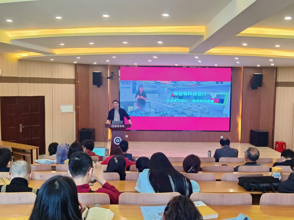 刘园美深刻阐释了师德师风建设的内容及要求,并通过近期出现社会影响较大的师德警示教育案例,警醒教职工要以案明理,以案明纪。刘园美强调,育有德之人,需有德之师,努力做“经师”与“人师”的统一,是新时代对教育工作者提出的更高要求。公司通过成立师德师风建设领导小组,开展师德师风问卷调查、评价表、承诺书等形式把握教师思想动态;通过把好人才引进“入口关”、上好新学期“师德第一课”等形式从源头抓师德师风;通过营造尊师重教的“仪式感”、典型案例警示教育等方式防范失德行为,划“红线”,守“底线”,筑“防线”,引导教职工牢记师德师风这个根本。学院将积极构建教育、宣传、考核、监督、奖惩“五位一体”的师德师风建设长效机制,着力解决师德师风建设存在的突出问题和薄弱环节,开展“员工眼中的导师”等征文形式来如何做到员工喜爱的老师,以“四有好老师”“四个引路人”“四个相统一”的标准来引导全院教职工成长发展,不断提升思想政治素质与职业道德水平。