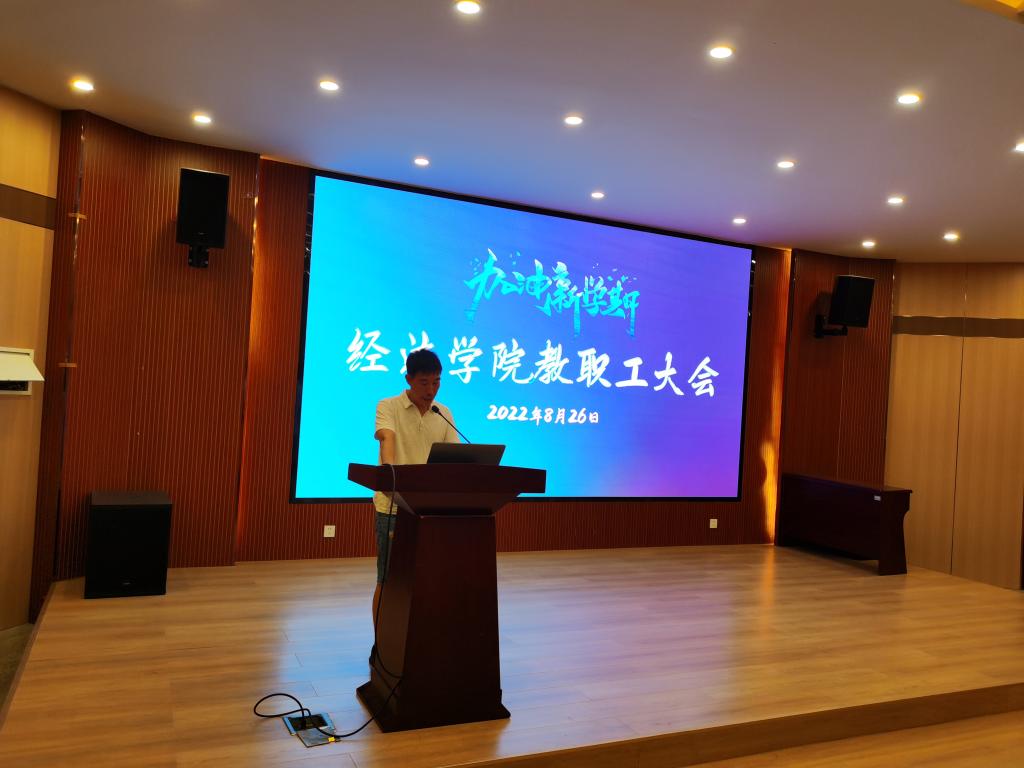 8月26日下午两点,学院在崇德楼T301会场召开2022年秋季新学期教职工大会,班子成员、学院全体教职工参加会议,公司党委书记刘园美主持了会议。